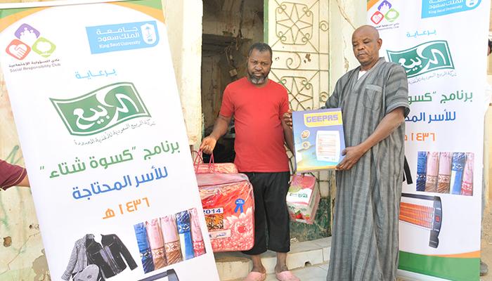 نفذ نادي المسؤولية الاجتماعية بجامعة الملك سعود، المرحلة الرابعة لعام 1436هـ من برنامج "كسوة شتاء" برعاية شركة الربيع ، و استفاد من البرنامج في عامه الثالث أكثر من 280 أسرة من الأسر المحتاجة في حي الخزان وحي السبالة بالرياض، وأسهم البرنامج في تزويد الأسر بالدفايات والبطانيات، بالإضافة إلى عدد كبير من منتجات العصير والحليب ومواد غذائية أخرى، وتأتي هذه المرحلة بعد المراحل الثلاث، والتي استفاد منها أكثر من 800 أسرة , وأشاد الشريف منذر الحارثي الرئيس التنفيذي لشركة الربيع السعودية للأغذية المحدودة بالدور الرائد الذي تقوم به جامعة الملك سعود من خلال نادي المسئولية الاجتماعية لخدمة المجتمع والالتفات إلى هذه الفئة المحتاجة، وتزويدها بما يساعدها على مواجهة موسم الشتاء، حيث يمثل برنامج "كسوة شتاء" أحد البرامج التطوعية والخيرية التي تحرص شركة الربيع على استدامتها بالنظر إلى دورها المؤثر في تعزيز جهود الشركة الرامية لتلمس احتياجات أفراد المجتمع من الأسر العفيفة ومساندتهم في مواجهة متطلبات فصل الشتاء بظروفه المناخية الصعبة، فضلاً عما يتيحه البرنامج من وسيلة لتشجيع مفهوم العمل التطوعي لدى منسوبي ومنسوبات الشركة ، وما يوفره من إمكانية لإشراكهم المباشر في تنفيذ مبادرات الشركة والمساهمة في إنجاح مقاصدها على نحو عملي يترجم القيم الأخلاقية التي تحكم نشاط شركة الربيع.