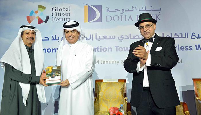 اجتمع كبار قادة الشركاء والمجتمع في الدوحة مساء (الأربعاء 14 يناير 2015) لمناقشة التحديات والفرص التي يوفرها التكامل الاقتصادي العالمي ودراسة استراتيجيات النمو الشامل خلال مؤتمر استضافه بنك الدوحة في فندق فور سيزونز، الدوحة. وأقيم المؤتمر برعاية منتدى المواطن العالمي تحت شعار "تشجيع التكامل الاقتصادي سعياً إلى عالم بلا حدود". وقد حضرة سعادة الشيخ/عبد الرحمن بن محمد بن جبر آل ثاني، العضو المنتدب لبنك الدوحة. وترأس المؤتمر سعادة الدكتور ناصر عبد العزيز النصر، الممثل السامي للأمم المتحدة لتحالف الحضارات والرئيس السابق للجمعية العامة للأمم المتحدة، الذي أطلق رسمياً على هامش المؤتمر كتابه والذي يحمل عنوان "عام تحت قبة الجمعية العامة للأمم المتحدة. وقد تم إهداء سعادة الشيخ/عبد الرحمن بن محمد بن جبر آل ثاني النسخة الأولى من الكتاب.