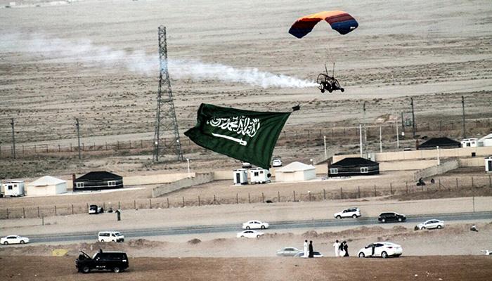 حلّق 20 طيارا من فريق الوطن للطيران والرياضيات الجوية في سماء الرياض بالطيران الشراعي تحمل صورا لخادم الحرمين الشريفين الملك سلمان بن عبدالعزيز وولي عهد الأمير مقرن بن عبدالعزيز وولي ولي عهد الأمير محمد بن نايف ، لمسافة أكثر من 100 ألف متر مربع ، تعبيرا عن البيعة ، وانطلقت الطائرات الشراعية من نادي الطيران في الثمامة بمشاركة أكثر من 40 عضوا في فريق الوطن للطيران والرياضات الجوية بقيادة عيد الجريد ، وهبط الطيارون الى موقع تجمع المتنزهين لإشراكهم في البيعة وأكد قائد فريق الوطن للطيران والرياضات الجوية عيد الجريد أن الهدف من المسيرة الجوية المبايعة على السمع والطاعة لولاة الأمر بقيادة خادم الحرمين الشريفين ، وإيصال رسالة الى العالم أجمع بتوضيح الصورة الحقيقية للشعب السعودي في التكاتف والأمن والأمان الذي تنعم به المملكة والحب الكبير والانتماء للقيادة الحكيمة في هذا الوطن.