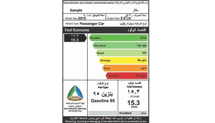 بطاقة اقتصاد الوقود تُعنى بالمركبات الخفيفة التي يقل وزنها عن 3500 كجم
