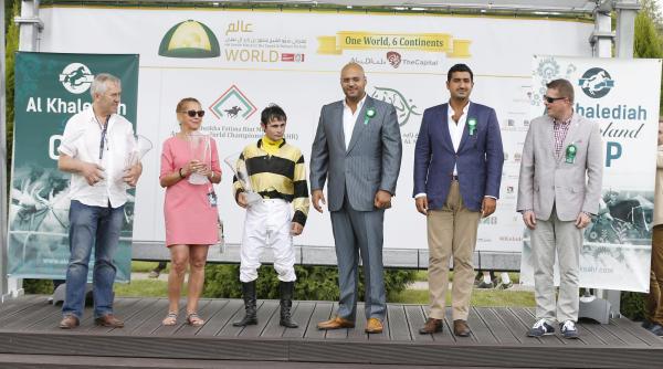 ونيابة عن الامير خالد بن سلطان بن عبدالعزيز سلم الامير فهد بن خالد بن سلطان الكأس لصاحب الجواد الفائز وسط فرحة ملاك الخيل العربية في بولندا