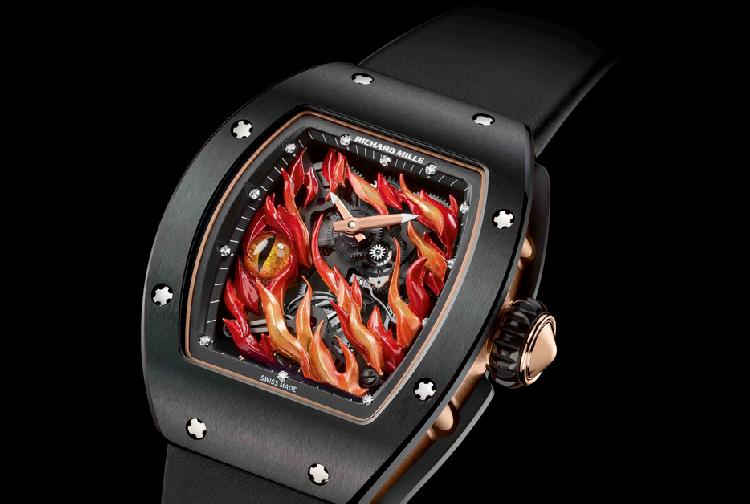 صممت ساعة The Evil Eye RM 26-02 Tourbillon وتم إحياؤها من قبل أوليفيير فوشر، وهو أحد الحرفيين المشهورين من جنيف. مصنوعة من الذهب الأحمر 3N، تم نحت اللهب والعين يدوياً باستخدام الأزاميل المصنّعة خصيصاً لإتمام أدقّ التفاصيل بشكلٍ مثالي. عملية الصقل grand feu الفنية هي ما يعطي العين عمقها وواقعيتها. ففي عملية الصقل grand feu، يتم رسم العناصر على ذهب قرص الساعة باستخدام عدد من الأوكسيدات النادرة قبل أن يتم إشعالها عند درجة حرارة مرتفعة تتراوح بين 800 درجة مئوية و 900 درجة مئوية لعدة مرات وذلك تحت أنظار الصاقل المتنبّهة في عمليةٍ لا تترك أي مجالٍ للخطأ. ويتم بعد ذلك إنهاء العملية بعدة طبقاتٍ إضافية من الطلاء الشفاف والذي يتم تطبيقه بنفس الطريقة. تكوّن هذه الطبقات المتعددة معاً عمقاً بصرياً متألقاً لا يمكن تحقيقه بأي طريقةٍ أخرى.