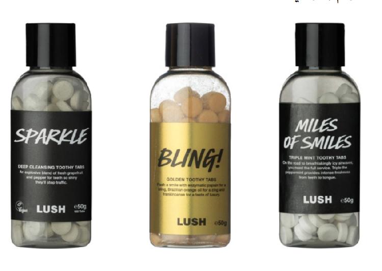وتبدأ التشكيلة بأقراص تنظيف الأسنان حيث تقدم لش مفهوماً جديداً كليّاً للعناية بالفم والأسنان في خطوة عصرية تخلّصنا من معجون الأسنان التقليدي لما تتمتع بها الأقراص من خواص تعتني وتحافظ على نظافة الأسنان وتمنح انتعاشاً مميّزاً. كما تأتي الأقراص بثلاث نكهات مختلفة ومنعشة لتختاروا المفضّلة منها. وتشمل الأقراص Miles of Smiles و Bling و Sparkle حيث تأتي أقراص مايلز أف سمايلز بنكهة النعناع المنعش بينما أقراص بلينغ بنكهة البرتقال البرازيلي الشهير بنكهته اللذيذة وأخيراً أقراص سباركل بمزيج من الليمون والجريب فروت مع الفلفل لتمنح نكهة مميّزة ومنعشة. كل ما عليكم فعله هو تناول قرص واحد ومضغه لتنتشر الرغوة ومن ثم استخدام فرشاة الأسنان كالمعتاد ومن ثم شاهدوا النتيجة.
