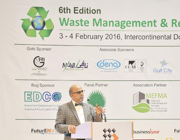 وتناول الدكتور ر.سيتارامان الإجراءات التي قامت باتخاذها دول مجلس التعاون الخليجي فيما يخص إدارة النفايات حيث قال:" في يونيو 2015 كشف مركز إدارة النفايات في أبوظبي (تدوير) عن مخطط رئيسي متكامل لإدارة النفايات في العاصمة أبوظبي خلال الـ 25 عاماً المقبلة والتي تتضمن تقسيم أبوظبي إلى مناطق تضم أنواع محددة من مراكز التدوير يتم إنشاؤها بحسب نوع النفايات المجمّعة في تلك المنطقة. وتهدف الخطة إلى دمج المرافق الجديدة في المرافق القائمة. وستتم إعادة هيكلة مكبات النفايات التي يتم فيها إلقاء النفايات وحرقها من أجل الاستخدام الأمثل للطاقة وتطبيق منهجية سليمة صديقة للبيئة. ولقد تراجع عدد مكبات النفايات في قطر نظراً لقلة المساحات مما يتطلب إيجاد مكبات نفايات جديدة. وتهدف قطر إلى زيادة حصة إعادة التدوير من 8% إلى 38% من المخلفات الصلبة، وتقليل مكبات النفايات إلى 53% وتحويل النفايات إلى طاقة".