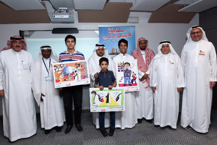 وقد تم تقديم الشهادات ونماذج من الرسومات الفائزة والجائزة النقدية وقيمتها 2500 ريال (لكل فائز) للفائزين اثناء الحفل.  الفائزين في مسابقة الرسم #شكرا_معلمي: