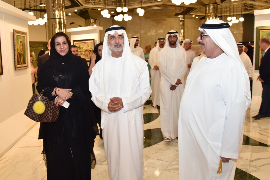 وقام الشيخ نهيان بن مبارك ال نهيان بجولة في المعرض، الذي عكست لوحاته أسلوب الفنان السعودي ومضامين أعماله وفلسفته التشكيلية التي ترتكز على التراث السعودي والخليجي وترصد تاريخ أسرة آل سعود .