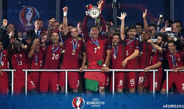 بقذيفة مباغتة من اللاعب البديل إيدر لوبيز في الوقت القاتل ، توج المنتخب البرتغالي لكرة القدم بلقبه الأول في البطولات الكبيرة ودون الفريق اسمه في السجل الذهبي لبطولات كأس الأمم الأوروبية بإحراز كأس النسخة الخامسة عشر (يورو 2015) اثر فوزه الثمين 1 / صفر على نظيره الفرنسي اليوم الأحد في المباراة النهائية للبطولة التي اختتمت اليوم في فرنسا.