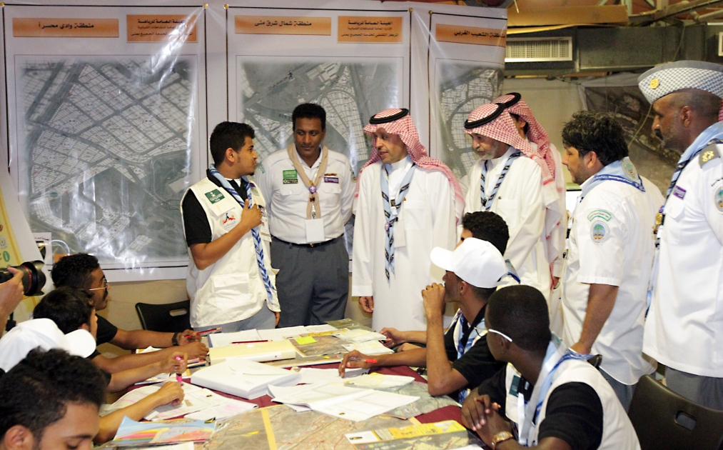 من جهة اخرى يواصل القادة والكشافة فعاليات المرحلة الاولى من برنامج المركز وهي عملية المسح التي انطلقت غرة شهر ذي الحجة وتختتم اليوم الخميس والتي شملت اجراء المسح لكافة المواقع وحملات الحج والمرافق بمشعر منى وذلك تمهيدا لإصدار الخرائط والدليل الارشادي الذي سيصدر باللغتين العربية والانجليزية 00 وبين قائد لجنة المسح والارشاد عبدالباسط جمعة بانه هذه المرحلة قد تمت كما خطط لها منذ انطلاقتها ومن خلال انجاز 6200 ساعة مسح ساهم فيها 160 اخصائي وجوال 00 مشيرا لقيام لجنة تقنيات المعلومات بالمركز بتفعيل تطبيق ( دليلك في الحج ) للأجهزة الذكية لأول مرة والذي يمكن الحجاج من مساعدتهم خلال تواجدهم في المشعر ودون الحاجة للاتصال بشبكة الانترنت ويعتبر دليل شامل لكافة المخيمات في مشعر منى سواءً مرافق حكومية أو سكن حجاج.