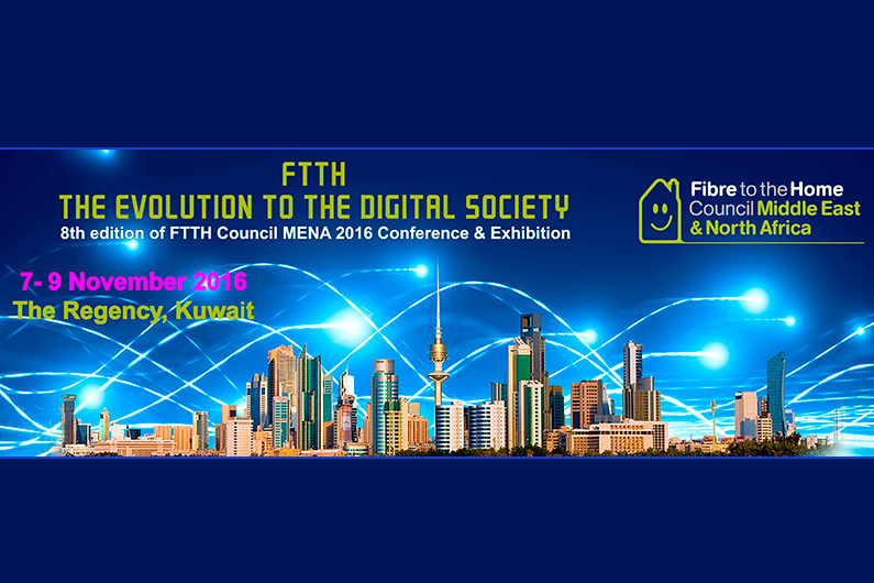 أعلن مجلس توصيل الألياف البصرية للمنازل في منطقة الشرق الأوسط وشمال إفريقيا عن تدشين النسخة الثامنة من مؤتمر توصيل الألياف البصرية للمنازل في الشرق الأوسط وشمال إفريقيا في الفترة ما بين 7-9 نوفمبر 2016 في فندق الريجينسي في الكويت . يرعى المؤتمر معالي المهندس/ سالم مثيب الاذينه، رئيس مجلس الإدارة والرئيس التتفيذي للهيئة العامة للاتصالات و تقنية المعلومات. يتمتع المؤتمر بدعم الشركات كومسكوب، ديتيكون ، عمان فايبر أوبتيك وبريسميان كرعاةٍ ذهبيين. يحمل المؤتمر عنوان " توصيل الألياف البصرية للمنازل؛ التطور للمجتمع الرقمي". سيشهد المؤتمر حضور الاتحاد الدولي للاتصالات بالإضافة الى أبرز ممثلي صناعة تقنية المعلومات والاتصالات.