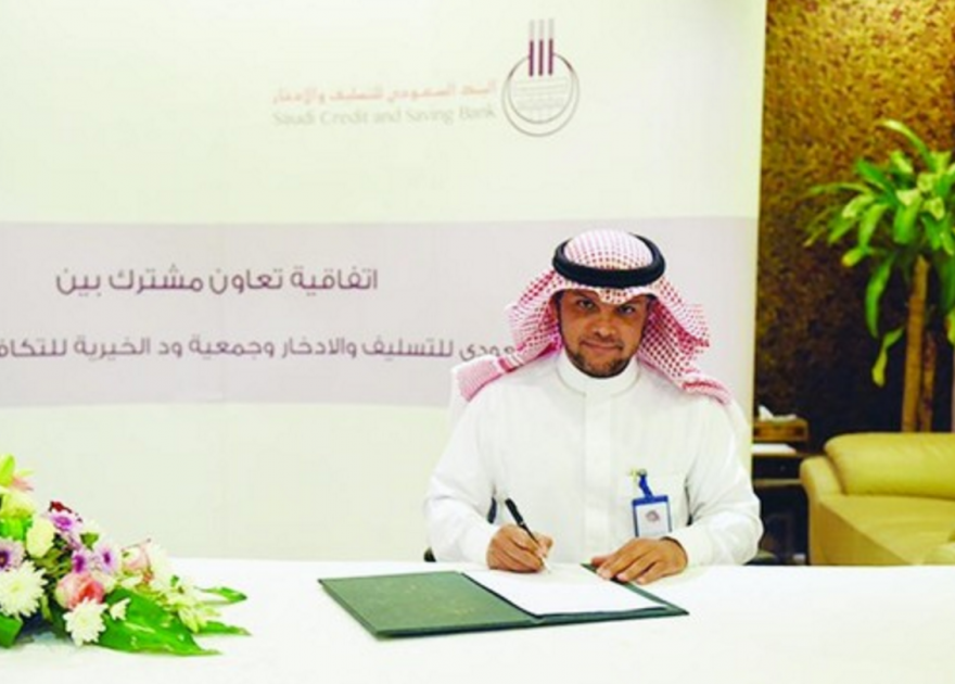 وقع البنك السعودي للتسليف والادخار اتفاقية تعاون مع جمعية ود الخيرية للتكافل والتنمية الأسرية وذلك لدعم ورعاية وتمويل المشاريع متناهية الصغر والأسر المنتجة.