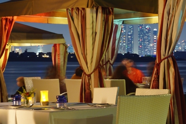 يقدم المطعم الذي يتمتع بإطلالة ساحرة على البحر الهادئ ويضفي مشهدا جميلا للراحة والاسترخاء، مجموعة من الأطعمة والمشويات التي يشرف على اعدادها أمهر الطباخين في الفندق، ويقع على الشاطئ مباشرة لاتاحة الفرصة للزوار والضيوف الاستمتاع بتناول اشهي الاطباق والاستمتاع بالواجهة البحرية وسط الحدائق والنوافير الهادئة .