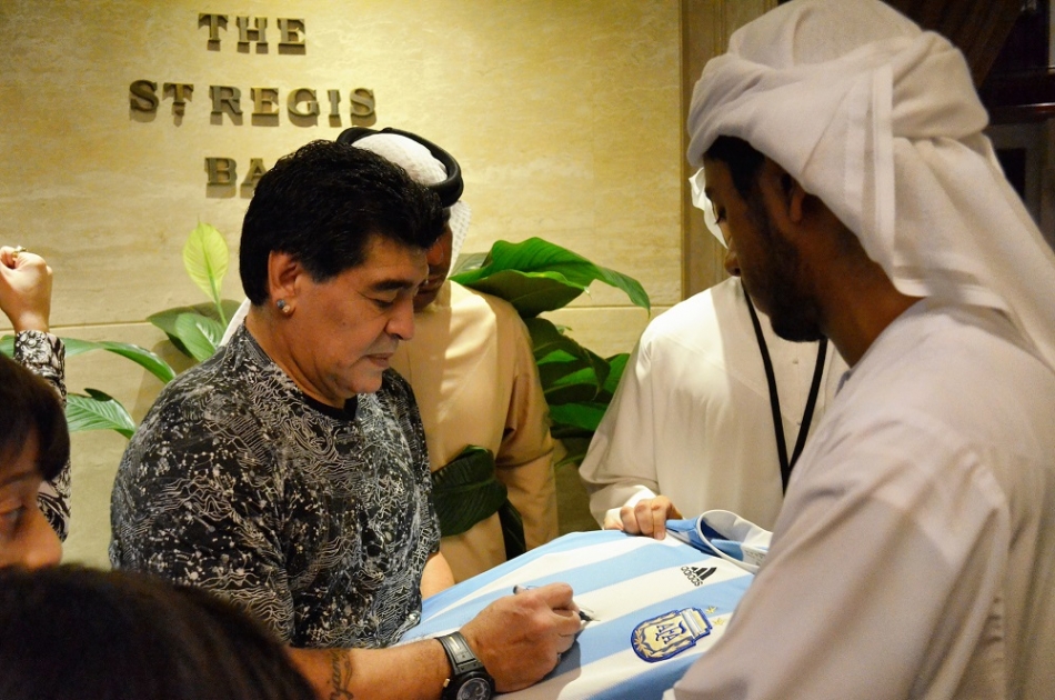 إستضاف فندق "سانت ريجيس أبوظبي" أسطورة كرة القدم دييغو مارادونا في جناح أبوظبي , الأعلى في العالم , احتفالا بعيد ميلاده السادس و الخمسين الذي صادف يوم الأحد الموافق 30 أكتوبر 2016.