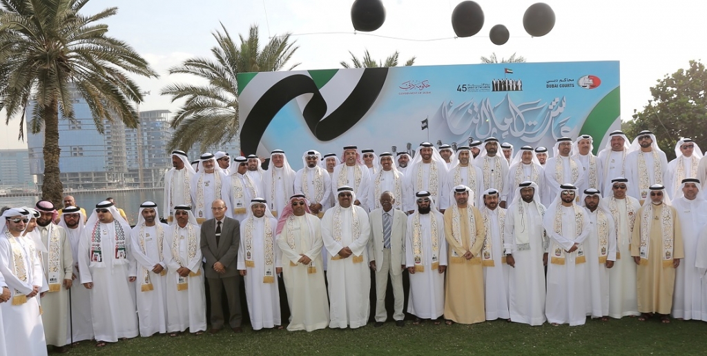 نظمت محاكم دبي احتفالية كبيرة بمناسبة اليوم الوطني الـ 45 للدولة بمشاركة سعادة طارش عيد المنصوري مدير عام محاكم دبي والهيئة القضائية والإدارية وجميع الموظفين والمتعاملين مع محاكم دبي إذ عبر المشاركون عن بهجتهم وسعادتهم الغامرة بهذه المناسبة الوطنية الغالية.