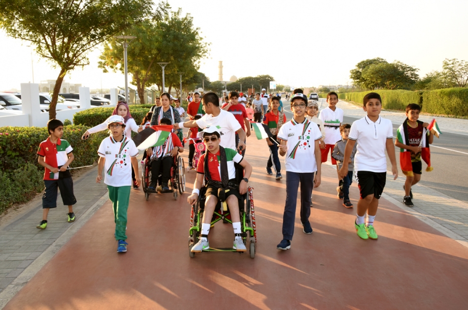 شارك نحو مائتي طفل معاق وسليم في مبادرة " #نمشي_معا_لأغلى _وطن '' التي نظمها سفير الايجابية ظاهر المهيري بالتعاون مع برنامج السعادة التطوعي ، قطعت المسيرة مسافة أربعة كيلو مترات في ممشى الخوانيج .