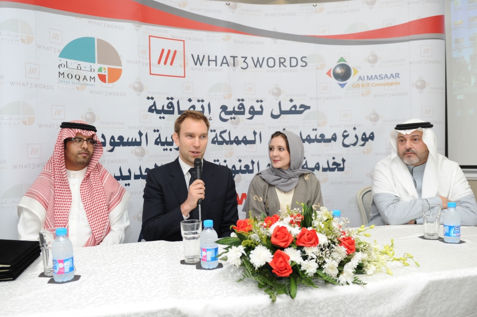 جاء ذلك خلال مؤتمر صحفى اقيم بمدينة جدة، حيث اطلع السيد / كريس شلدريك،الرئيس التنفيذي لشركة (WHAT3WORDS) البريطانية على مراحل تنفيذ المشروع ومميزاته بحضور المهندس / زياد القواسمي ،الرئيس التنفيذى لشركة مقام التميز السعودية وعدد كبير من ممثلى شركات محلية ودولية وممثلى وسائل الإعلام المحلى.