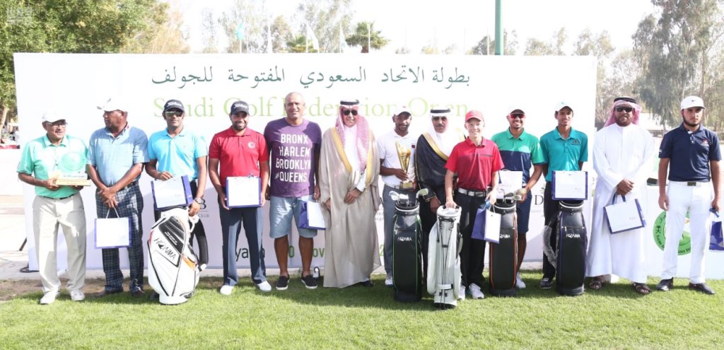 توج وكيل رئيس الهيئة لشؤون الشباب عبدالإله الدلاك أصحاب المراكز الأولى ببطولة الاتحاد السعودي للجولف المفتوحة في نسختها الثانية ، نيابة عن صاحب السمو الملكي الأمير عبدالله بن مساعد بن عبدالعزيز رئيس الهيئة العامة للرياضة رئيس اللجنة الأولمبية السعودية ، التي انطلقت