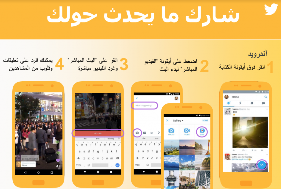 تتوفر ميزة بث الفيديو الحي على تويتر على آخر تحديثات لنظامي التشغيل آندرويد وآي أو إس.