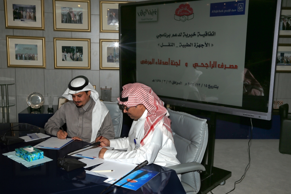 أبرمت لجنة أصدقاء المرضى بغرفة الرياض اتفاقية مع مصرف الراجحي لتنفيذ برنامجي "معافى للأجهزة الطبية ، وبرنامج نقل " للمرضى وذلك في إطار دعم مصرف الراجحي الدائم للجنة أصدقاء المرضى والمساهمة في مساعدة المرضى، وتتضمن الاتفاقية دعم مصرف الراجحي للجنة بمبلغ 1.3 مليون ريال لبرنامج "معافى" وهو برنامج لتأمين أجهزة ومعدات طبية للمرضى الغير قادرين على تأمينها و مبلغ 600.000 ريال لبرنامج " نقل " وهو توصيل المرضى من وإلى مراكز الغسيل الكلوي وإيصال الدواء والأجهزة الطبية لمكان إقامة المرضى اذا كان لا يستطيع الحضور لاستلامها.