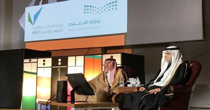 دشن معالي وزير التعليم الدكتور أحمد بن محمد العيسى، وسمو رئيس مدينة الملك عبدالعزيز للعلوم والتقنية الأمير الدكتور تركي بن سعود بن محمد آل سعود امس الأربعاء في القاعة الرئيسية بمبنى الوزارة المعجم الدراسي العربي للطلاب والطالبات في مراحل التعليم العام ، ويأتي هذ المشروع في إطار شراكة علمية بين الوزارة والمدينة، لمضاعفة العمل المشترك، وتنسيق الجهود الوطنية في مجال دعم البحث العلمي والتقني والابتكار، بما يتوافق مع الخطط التنموية الوطنية.