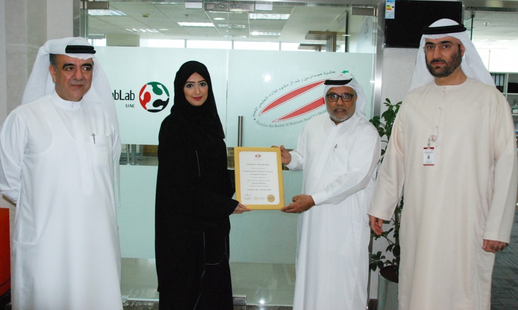 وقد سلمت السيدة فاطمة بطي المهيري رئيس مجموعة دبي للجودة شهادة الشراكة الاستراتيجية الي سعادة سليمان عبدالخالق الأنصاري المدير التنفيذي لجائزة حمدان بن راشد آل مكتوم للأداء التعليمي المتميز، تعبيراً منها عن امتنانها وتقديرها للدور الذى تلعبه جائزة حمدان في دعم جهود ومسيرة المجموعة نحو المضي قدماً في الجودة والتميز، وحضر مراسم الشراكة الاستراتيجية كبار الشخصيات من المسؤولين حيث شارك بالحضور كل من الدكتور سيد محمد الهاشمي، المدير التنفيذي لقطاع المنافع والتمكين المالى بهيئة تنمية المجتمع ومن جائزة حمدان بن راشد آل مكتوم للأداء التعليمي المتميز، حضر كل من السيد عبد النور الهاشمي، مساعد المدير التنفيذي لقطاع الإعلام، والأستاذة خولة أحمد بحلوق مساعد المدير التنفيذي لقطاع التميز والموهبة، والسيد خالد داوود محمد، الأمانة العامة وأعرب الطرفين عن إمتنانهم لهذة الشراكة ورغبتهم في تطويرها لتصبح نموذجا يحتذى به لكل المؤسسات الباحثة عن الجودة والتميز.
