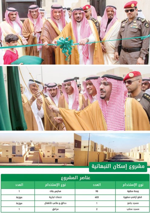 وشهدت النبهانية بمنطقة القصيم ثاني المشاريع، الذي دشنه صاحب السمو الملكي الأمير فيصل بن مشعل بن عبد العزيز أمير المنطقة، بحضور معالي وزير الإسكان ماجد بن عبد الله الحقيل، وصاحب السمو الملكي الأمير سعود بن طلال بن بدر المستشار والمشرف العام على وكالة وزارة الإسكان للدعم السكني والفروع. وشغل المشروع أرضًا مساحتها 430,360 مترًا مربعًا، بقيمة إجمالية بلغت 179.984.412 ريالاً، وتألف من 90 وحدة سكنية من نوع فيلا، إضافة إلى 403 منتجات من نوع قطعة أرض سكنية. كما يشتمل المشروع على جامع ومسجدين.