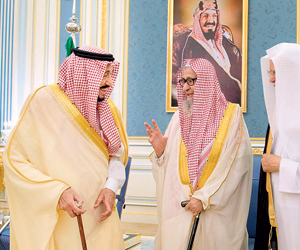 ثم تشرف الجميع بالسلام على خادم الحرمين الشريفين.