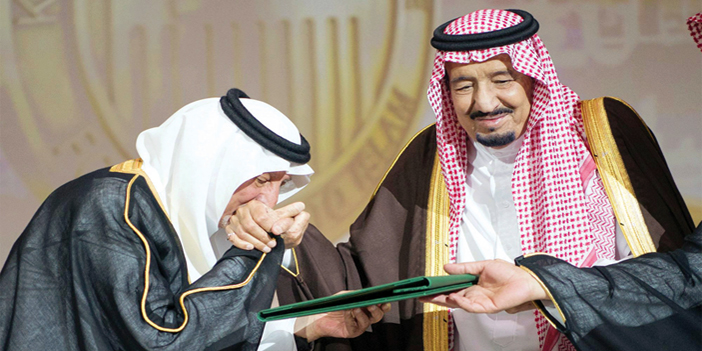 ثم تسلم خادم الحرمين الشريفين الملك سلمان بن عبدالعزيز آل سعود - حفظه الله - جائزة الملك فيصل العالمية لخدمة الإسلام لهذا العام نظير عنايته الفائقة بخدمة الحرمين الشريفين وقاصديهما، واهتمامه بالسيرة النبوية، ودعمه لمشروع الأطلس التاريخي للسيرة النبوية وتنفيذه بدارة الملك عبدالعزيز، وإنشائه لمجمع الملك عبدالعزيز للمكتبات الوقفية بالمدينة المنورة لحفظ التراث العربي والإسلامي، وسعيه الدائم لجمع كلمة العرب والمسلمين لمواجهة الظروف الصعبة التي تمر بها الأمتان الإسلامية والعربية، بالإضافة لجهوده في إنشاء التحالف الإسلامي العسكري لمحاربة الإرهاب واستضافة مقره بالرياض، ومواقفه العربية والإسلامية عبر عقود من الزمن تجاه قضية فلسطين المتمثلة في الدعم السياسي والمعنوي والإغاثي، وكذلك ترؤسه وإشرافه المباشر على عدد من اللجان الشعبية والجمعيات الخيرية لإغاثة المنكوبين والمحتاجين في العديد من الدول الإسلامية والعربية، وإنشائه مركز الملك سلمان للإغاثة والأعمال الإنسانية، ودعمه بسخاء ليقدم العون للشعوب الإسلامية والعربية المحتاجة.