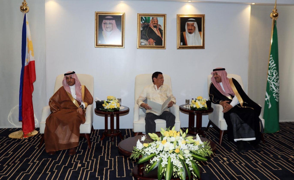 وقد عبر فخامته خلال اللقاء عن شكره لما وجده من حفاوة الاستقبال مؤكدا عمق الصداقة بين البلدين مشيدا بما تشهده المملكة من تنمية اقتصادية في مختلف المجالات مشيرا الى حرص بلاده على اقامة علاقات اقتصادية كبيرة مع المملكة تغطي عدد من المجالات الاستثمارية اضافة الى زيادة حجم التبادل التجاري بين البلدين، وقال إن المملكة تعتبر شريكا اقتصاديا مهما مبينا ان الاقتصاد الفلبيني يتميز بتوافر العديد من الفرص الاستثمارية الواعدة في شتى القطاعات الاقتصادية.