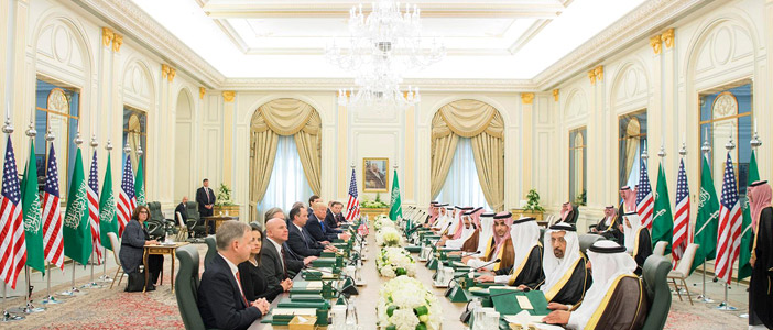 عقد خادم الحرمين الشريفين الملك سلمان بن عبدالعزيز آل سعود - حفظه الله - جلسة مباحثات رسمية مع فخامة الرئيس دونالد ترمب رئيس الولايات المتحدة الأمريكية وذلك في قصر اليمامة بالرياض.