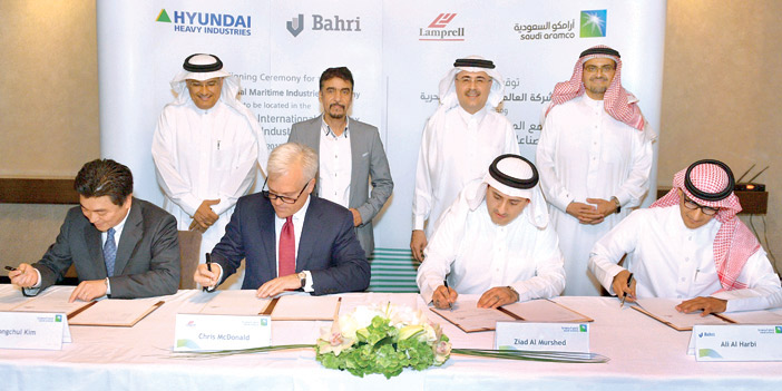وقعت أرامكو السعودية اتفاقية مساهمين مع شركة لامبريل بي إل سي «لامبريل»، والشركة الوطنية السعودية للنقل البحري «البحري»، وشركة هيونداي للصناعات الثقيلة المحدودة «هيونداي للصناعات الثقيلة»، للشراكة في مشروع مُشترك يهدف إلى تأسيس وتطوير وتشغيل مجمع عالمي للصناعات البحرية كمشروع أساسي في مجمع الملك سلمان العالمي للصناعات والخدمات البحرية في رأس الخير، قُرب مدينة الجبيل الصناعية على الساحل الشرقي للمملكة.