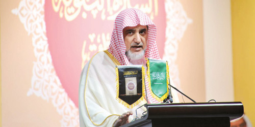 أعلن معالي وزير الشؤون الإسلامية والدعوة والإرشاد الشيخ صالح بن عبدالعزيز آل الشيخ عن دعم الوزارة بمبلغ مليون ريال سنويا لمشروع مؤسسة «أوقاف السلام عليك يا أيها النبي» وذلك إسهاما في تحقيق قول الله عز وجل «ورفعنا لك ذكرك» ودعم كل عمل يسهم في رفع سيرة النبي محمد صلى الله عليه وسلم من منطلق النهج القويم الذي قامت عليه هذه البلاد منذ تأسيسها على يد الملك عبدالعزيز - رحمه الله - حتى عهدنا الزاهر عهد خادم الحرمين الشريفين الملك سلمان بن عبدالعزيز آل سعود - حفظه الله -. جاء ذلك خلال تدشينه مساء أمس الأول حملة المليار نسخة العالمية من كتيب «السيرة النبوية في دقائق» التي تنفذها مؤسسة أوقاف السلام تحت شعار «جلال السيرة وجمال المسيرة» بكل اللغات العالمية الحية, وقام بتأليفه الدكتور ناصر بن عبدالعزيز الزهراني, وقرأه ودققه أكثر من 250 عالما وأكاديميا حول العالم, وحظي بتوقيع أكثر من 50 عالما من أصحاب السماحة والمعالي والفضيلة المفتين وكبار العلماء في العالم, وذلك بفندق هيلتون بجبل عمر في مكة المكرمة, بحضور عدد من أصحاب الفضيلة والمعالي والعلماء والمسؤولين بمكة المكرمة. ونوه معالي وزير الشؤون الإسلامية بما توليه الحكومة الرشيدة من عناية فائقة بكتاب الله الكريم، وسنة رسوله عليه أفضل الصلاة وأتم التسليم, مبيناً أن رفع ذكر النبي صلى الله عليه وسلم قضاء كوني وأمر شرعي تكليفي, وأن الصحابة والتابعين وتابعي التابعين رضوان الله عليهم أجمعين وأهل العلم تنافسوا على أمرين أحدهما حفظ كتاب الله الكريم وتدريسه وتعليمه وإبقائه في الأمة كما نزل، والآخر حفظ السنة النبوية بخصوصها التي تحكي سيرته صلى الله عليه وسلم من قبل ولادته وعند ولادته والعهد المكي والعهد النبوي إلى وفاته, مؤكدا أن كتابات العلماء في السيرة النبوية من أسباب رفع ذكر النبي عليه أفضل الصلاة وأتم التسليم.