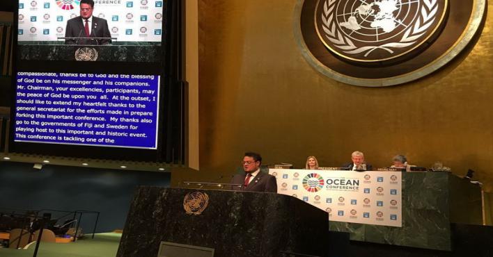 أكدت المملكة العربية السعودية استمرارها في دعم التوجهات الدولية والإقليمية التي تهدف إلى حماية بيئة البحار والمحيطات وتخفيض مصادر التلوث البحري مشيرة إلى أن برنامج التحول الوطني الذي يهدف الى تحقيق رؤية المملكة 2030 الطموحة يولي حماية البيئة والحفاظ على الموارد الطبيعية والتنمية المستدامة أولوية كبيرة ويتضمن العديد من الأهداف والبرامج التي تصب في هذا الإطار.جاء ذلك في كلمة المملكة اليوم أمام مؤتمر الأمم المتحدة لدعم تنفيذ الهدف (14) من أهداف التنمية المستدامة حول "حفظ المحيطات والموارد البحرية واستخدامها على نحو مستدام لتحقيق التنمية المستدامة" وألقاها رئيس الوفد وكيل وزارة البيئة والمياه والزراعة الدكتور أسامه بن إبراهيم فقيها.وقال الدكتور فقيها "انطلاقاً من أهداف ومقاصد التنمية المستدامة وإيماناً بأهمية البيئة بشكل عام ومن ضمنها المحافظة على المحيطات والبحار وتمشياً مع التوجهات الوطنية والإقليمية والدولية أولت المملكة العربية السعودية الحفاظ على البيئة اهتمامًا كبيرًا وعملت على تسخير جميع الجهود لتحقيق أهداف ومقاصد التنمية المستدامة المتوافقة مع تعاليم ديننا الحنيف التي منها المحافظة على البيئة البحرية وذلك من خلال سن القوانين والأنظمة واتخاذ الإجراءات الكفيلة بالحفاظ على البيئة والموارد الطبيعية. وفيما يخص البيئة الساحلية والبحرية فقد أنعم الله على المملكة بسواحل مطلة على البحر الاحمر والخليج العربي يبلغ طولها حوالي 2700 كيلومتر وتعمل المملكة جاهدة للحفاظ عليها من خلال العديد من الإجراءات ومن ضمنها عمل الدراسات والأبحاث التي من شأنها توفير القاعدة العلمية اللازمة لفهم وتوثيق البيئة البحرية في الخليج العربي والبحر الأحمر واتخاذ الإجراءات الهادفة الى الحد من التلوث البحري".وأضاف بأن برنامج التحول الوطني الذي يهدف إلى تحقيق رؤية المملكة 2030 الطموحة يولي حماية البيئة والحفاظ على الموارد الطبيعية والتنمية المستدامة أولوية كبيرة ويتضمن العديد من الاهداف والبرامج التي تصب في هذا الإطار ومنها إنتاج 9500 ميغاوات من الطاقة المتجددة بحلول عام 2023 وإطلاق برنامج وطني لرفع كفاءة الطاقة للحفاظ على الموارد وتخفيض انبعاثات ملوثات الهواء ومبادرات لإعادة تدوير النفايات ورفع نسبة استخدام مياه الصرف المعالجة ومبادرات لحماية الغطاء النباتي ومكافحة التصحر وحماية الحياة الفطرية والتنوع الإحيائي وغيرها من المبادرات والبرامج التي توضح مضي المملكة قدماً في حماية البيئة وتحقيق أهداف التنمية المستدامة ومقاصدها.وأشار الدكتور فقيها إلى مشاركة المملكة الفعالة في المنظمات الإقليمية المعنية بحماية بيئة الخليج العربي والبحر الأحمر والتزام المملكة بالاتفاقيات الدولية ذات الصلة ومشاركتها في اجتماعاتها وما ينبثق عنها من بروتوكولات وتنسيق الجهود لتحقيق التنمية المستدامة.وخلص في ختام كلمته إلى القول "ختاماً تود المملكة العربية السعودية أن تؤكد استمرارها في دعم التوجهات الدولية والإقليمية التي تهدف إلى حماية بيئة البحار والمحيطات وتخفيض مصادر التلوث البحري للأهمية القصوى التي تمثلها البحار والمحيطات لاستدامة الحياة على كوكبنا ونأمل ان يحقق هذا المؤتمر الأهداف المرجوة منه وأن يخرج بتوصيات تُسهم في دعم حماية البيئة البحرية بما يحقق الرفاهية والاستقرار للإنسانية جمعاء".