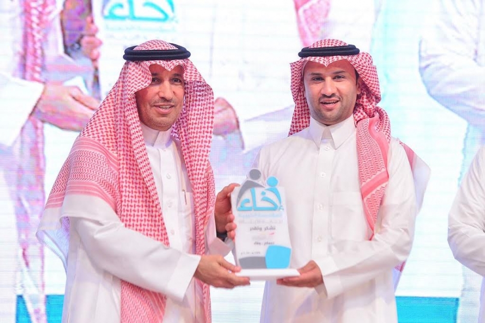 كرم معالي وزير العمل والتنمية الاجتماعية رئيس مجلس إدارة المؤسسة الخيرية لرعاية الأيتام " إخاء " الدكتورعلي بن ناصر الغفيص، شركة لجام الرياضية المالك والمشغل لمراكز "وقت اللياقة" في المملكة والامارات، وذلك خلال حفل الإفطار الذي أقامته مؤسسة " إخاء " لرعاية الأيتام أمس في قاعة نيارة في الرياض، برعاية وحضورمعالي وزير العمل والتنمية الاجتماعية.