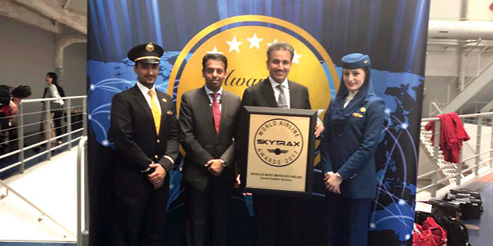 في حفلٍ كبير أُقيم بالعاصمة الفرنسية باريس يوم الثلاثاء 25 رمضان 1438ه الموافق 20 يونيو 2017م ضمن فعاليات معرض باريس الدولي للطيران بحضور ممثلي شركات الطيران العالمية والخبراء والمهتمين بصناعة النقل الجوي ووسائل الإعلام العالمية، أعلنت شركة سكاي تراكس المتخصصة في تقييم أداء وتصنيف خدمات شركات الطيران، فوز الخطوط السعودية بجائزة "شركة الطيران الأكثر تحسناً في العالم لعام 2017م" وذلك تقديراً لما حققته من تطويرٍ جوهري لمنتجاتها وتحسن ملموس لمستوى الخدمات المقدمة لضيوفها المسافرين إلى جانب التطور السريع لأسطول "السعودية" بانضمام أحدث طائرات البوينج 777 و787 دريملاينر والإيرباص أ330 بأنواعها المختلفة.
