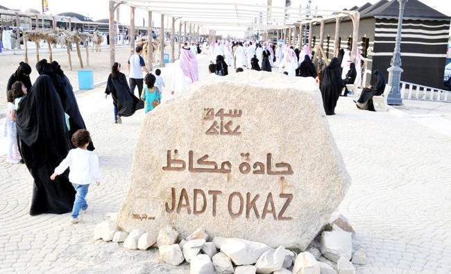 الشريفين الملك عبدالله بن عبدالعزيز - رحمه الله - صاحب السمو الملكي الأمير خالد الفيصل مستشار خادم الحرمين الشريفين أمير منطقة مكة المكرمة، واستمر هذا المشروع في كل عام يظهر تطوراً جديد في فعالياته وينتظر اكتمال عناصر المدينة الثقافية السياحية لسوق عكاظ .