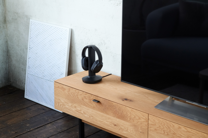 من السهل أن يتم وصل جهاز MDR-RF895RK من قاعدة جهاز الإستقابل المتصلة بالتلفزيون من خلال السلك المرفق مع الجهاز يسمح لك الجلوس والاسترخاء في حين مزامنة السماعات مع قاعدة جهاز الاستقبال. ومن السهل شحن السماعة بكل بساطة من خلال وضعها على قاعدة الإستقبال.