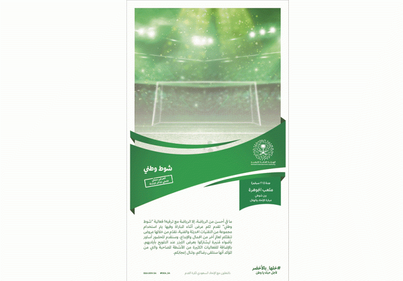 تزامناً مع الاحتفال باليوم الوطني الـسابع والثمانون، تنظم الهيئة العامة للترفيه لأول مرة فعالية بعنوان "شوط وطني " بملعب الجوهرة المضيئة بمدينة جدة يوم الخميس المقبل الموافق 21 سبتمبر والتي ستقام بين شوطي مباراة الكلاسيكو التي ستجمع فريقي الإتحاد والهلال.