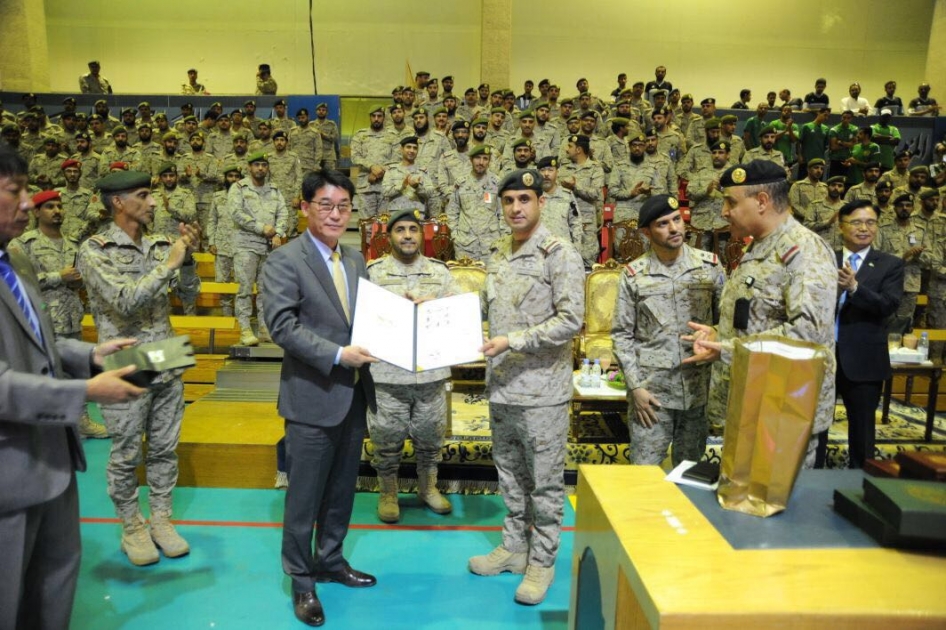الشخصيات من قبل الاتحاد والسفارة الكورية بالرياض حيث تم تبادل الهدايا التذكارية بين الجانبين