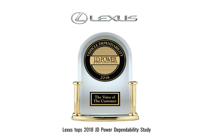 حصلت لكزس على المركز الأول للسنة السابعة على التوالي في الدراسة التي أجرتها المؤسسة المرموقة J.D. Power في مجال المسوح التقييمية والاستطلاعات الاختبارية لعام 2018، حيث حصلت لكزس على المرتبة الأولى فيما يخص مستويات الاعتمادية والموثوقية لعام وتم تصنيفها بأنها السيارة الأقل أعطالا مقارنة بالسيارات الفاخرة الأخرى حسب نتائج الاستبيان وصل عدد المشاركين فيه إلى36,896 شخصاً من مالكي السيارات لموديلات 2015.
