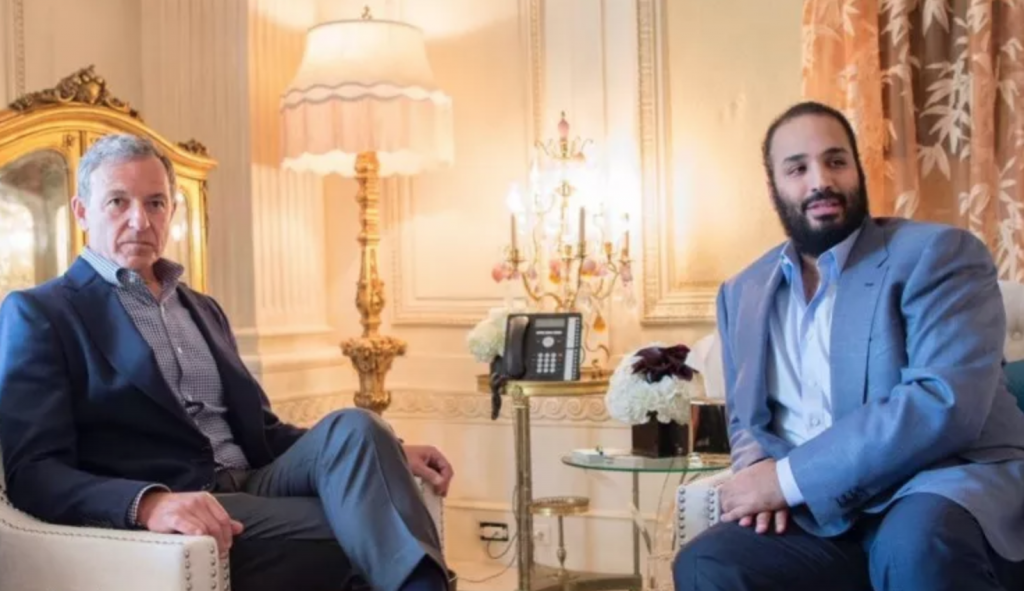 التقى صاحب السمو الملكي الأمير محمد بن سلمان بن عبدالعزيز ولي العهد نائب رئيس مجلس الوزراء وزير الدفاع بمقر إقامته في لوس انجلوس اليوم رئيس مجلس الإدارة الرئيس التنفيذي لشركة والت ديزني / روبرت بوب ألن إيجر .