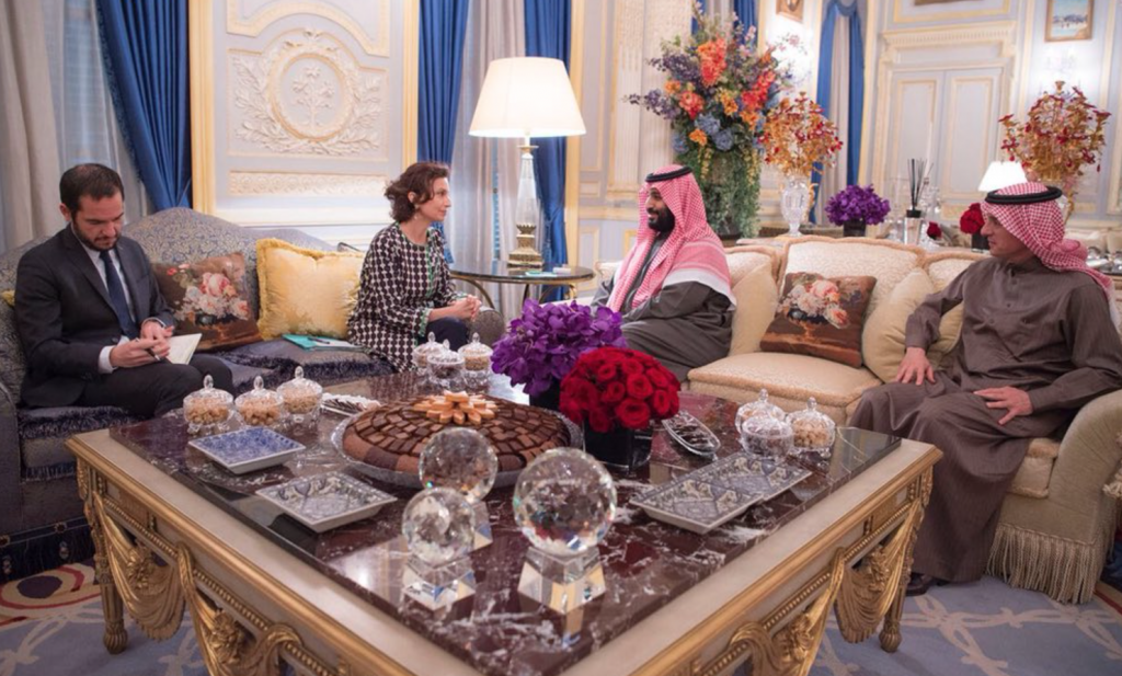اجتمع صاحب السمو الملكي الأمير محمد بن سلمان بن عبدالعزيز ولي العهد نائب رئيس مجلس الوزراء وزير الدفاع، في مقر إقامته ، مع المديرة العامة لمنظمة الأمم المتحدة للتربية والعلوم والثقافة (اليونسكو) السيدة أودري ازولاي.