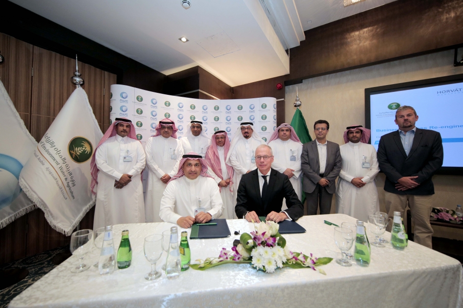 وأبرم العقد كل من المهندس محمد بن أحمد الموكلي وكيل وزارة البيئة والمياه والزراعة لخدمات المياه، الرئيس التنفيذي لشركة المياه الوطنية، والسيد ستيفن هالر الشريك والمدير التنفيذي لشركة هورفاث العربية السعودية المحدودة، وذلك بحضور نواب الرئيس والرؤساء التشغيليين لقطاع توزيع المياه في المملكة وعدد من المسؤولين.