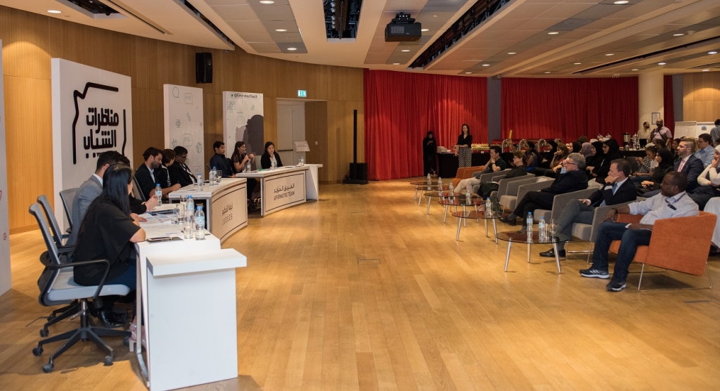 ويضم كل فريق ثلاثة طلاب يتناوبون على تقديم حجج وآراء تدعم آراءهم التي تقف مع أو ضد هذا التوجه، وذلك من خلال إظهار معرفتهم المعمقة بموضوع النقاش وهو ما بدا جليا من خلال الثقة في الردود على نقاط الفريق الآخر والغوص في أدق التفاصيل التي تدعم رأي كل منهم. وفي أعقاب النقاش، بدأ الفريقان في تلقي أسئلة من الحضور، ولجنة التحكيم قبل الانتقال إلى مرحلة التصويت من قبل الحكام والحضور. وكنتيجة نهائية، فقد فاز الفريق غير الداعم لهذا التوجه حيث كانت آراؤه أكثر إقناعا للحضور ولجنة التحكيم.