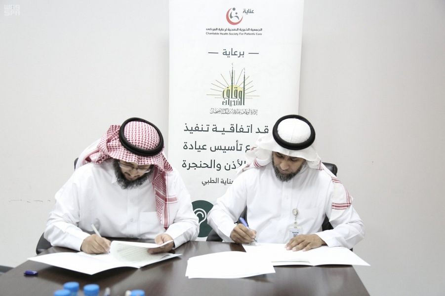 وقعت الجمعية الخيرية الصحية لرعاية المرضى "عناية " وأوقاف عبد الله بن تركي الضحيان، أمس عقد شراكة مجتمعية لتأسيس عيادة الأنف والأذن والحنجرة في مجمع عيادات عناية الطبي في حي السويدي .
