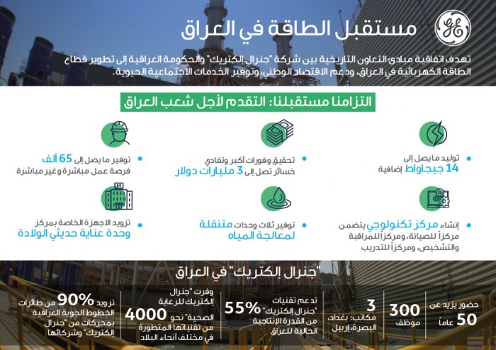 وكجزء من المقترحات التي تضمنها اتفاقية التعاون، وضمن إطار التزام "جنرال إلكتريك" بمستقبل مشترك وتقدم الشعب العراقي، ستعمل الشركة أيضاً على: