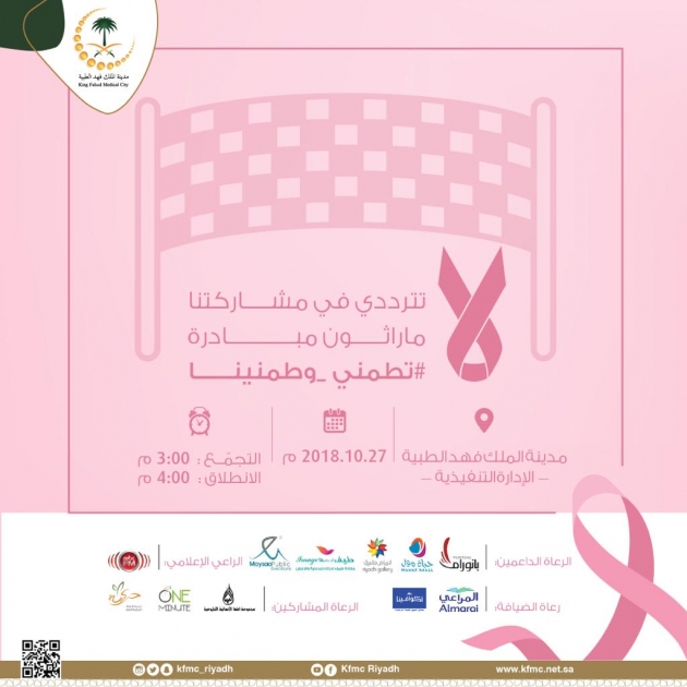 تطلق مدينة الملك فهد الطبية في تمام الساعة الرابعة من مساء السبت مبادرة "تطمني وطمنينا" للكشف المبكر عن سرطان الثدي ، داخل مبنى المدينة الطبية، و التي ستشهد إقامة مارثوان نسائي بمشاركة عدد من المشاهير ونجوم الإعلام .وقال مدير إدارة العلاقات العامة و الاتصال المؤسسي في مدينة الملك فهد الطبية الأستاذ إبراهيم التويجري بأن هذه المبادرة تأتي لتفعيل الدور المجتمعي والتوعوي من المدينة الطبية بأهمية الفحص المبكر لسرطان الثدي.