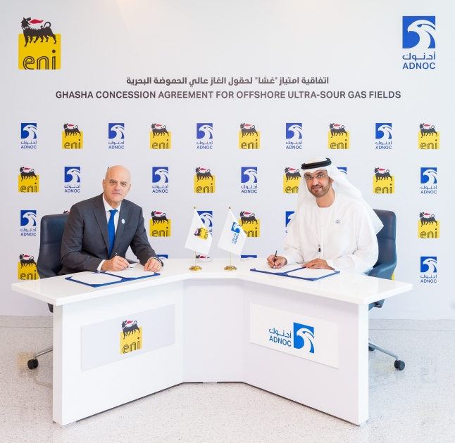 وقع الاتفاقية التي تسري لمدة أربعين عاماً كل من معالي الدكتور سلطان أحمد الجابر، وزير دولة الرئيس التنفيذي لأدنوك ومجموعة شركاتها، وكلاوديو ديسكالزي، الرئيس التنفيذي لشركة "إيني".