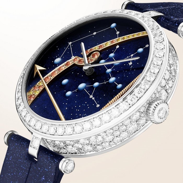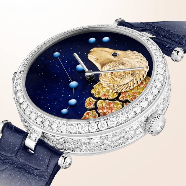 ولا شك أن موضوع الفلك قد استحوذ على خيال الدار منذ أن قدّمت فان كليف أند آربلز حليات الحظ على شكل الأبراج الغربية، وها هو يعود ليحتل مركز الصدارة هنا مع وجوه الساعة الاثني عشر لكل من برج الحمل والثور والجوزاء والسرطان والأسد والعذراء والميزان والعقرب والقوس والجدي والدلو والحوت.