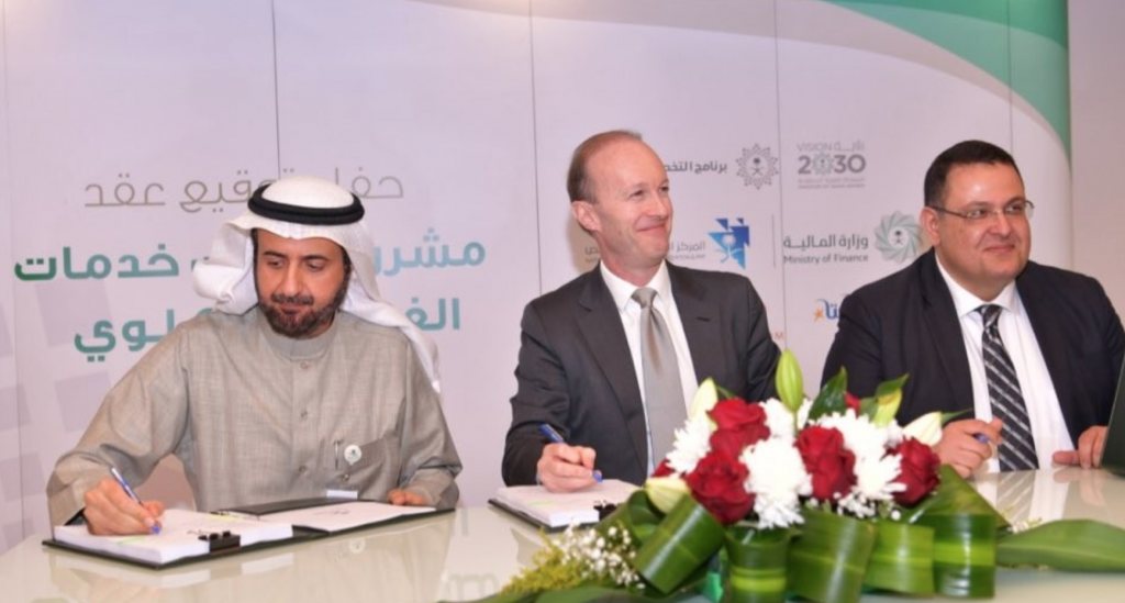 وقع وزير الصحة رئيس اللجنة الإشراقية لقطاع الصحة بحضور وزير الاقتصاد والتخطيط رئيس مجلس إدارة المركز الوطني للتخصيص عضو اللجنة الإشرافية أ. محمد بن مزيد التويجري في مقر الوزارة اليوم اتفاقيات مشروع غسيل الكلى بمختلف مناطق المملكة التي تُعد أولى مبادرات الشراكة بين القطاع العام والخاص وذلك مع شركة ديافرم اي بي، وشركة دافيتا للصحة.