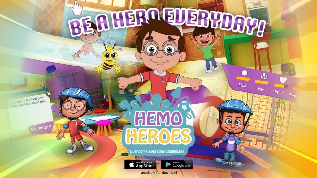ويقدم تطبيقٍ Hemo Heroes دوراً هاماً في الجانب التثقيفي عن مرض النزاف في قالبٍ ترفيهي مشوق. حيث يمكن تحميل اللعبة على نظاميْ الأندرويد والآي أو إس والمباشرة باللعب بها باختيار الشخصية الأساسية ومساعدها الخاص، والبدء بخوض تجربة مميزة في عالم مريض النزاف، ليخوض عدداً من التحديات اليومية المرتبطة بحياة المريض ، فيتمكن من مراقبة مستويات الصحة والطعام والتسلية والطاقة الواقية مع بعض النصائح والإرشادات من المساعد الخاص.